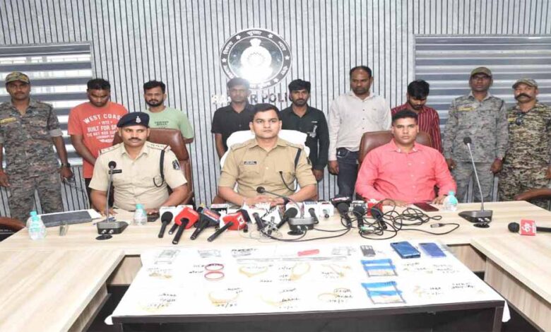 अगल-अलग स्थानों से चोरी के मामले में आरोपियो को पड़कने में बस्तर पुलिस को बड़ी सफलता मिली है. 7 आरोपियों ने मिलकर शहर में सूने घरों से चोरी की वारदात का अंजाम दिया था. थाना कोतवाली, बोधघाट एवं परपा क्षेत्र में चोरी के मामले में सभी आरोपियों को कोतवाली पुलिस ने गिरफ्तार किया है. उसके कब्जे से आरोपियों से सोने के जेवरात कुल वजन 235 ग्राम कीमती 19,74000 जब्त किया गया है.