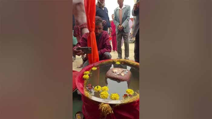 जूना अखाड़े में आए एक नागा बाबा और रामसेतु का चमत्कारी पत्थर श्रद्धालुओं को अपनी ओर आकर्षित कर रहा, उमड़ी भीड़