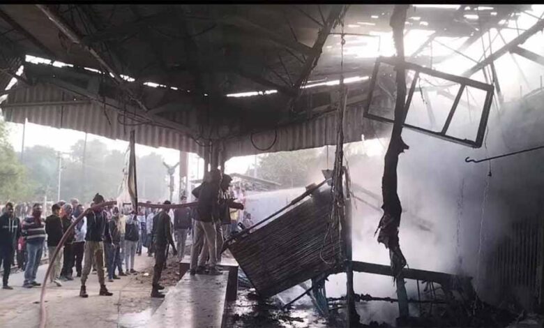 नवादा के पुराने रेलवे स्टेशन पर अचानक लगी आग, लपटें इतनी तेज थी किबुक स्टॉल को अपने आगोश में लिया