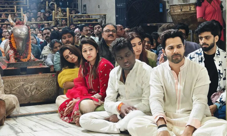 अभिनेता वरुण धवन, एक्ट्रेस कीर्ति सुरेश और वामिका और डाइरेक्टर एटली के साथ सुबह महाकाल मंदिर पहुंचे