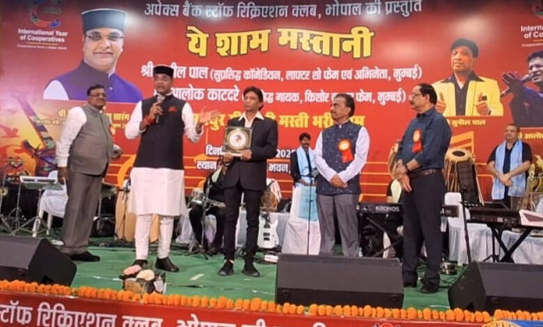 अपेक्स बैंक स्टाफ रिक्रियेशन क्लब भोपाल द्वारा समन्वय भवन भोपाल के सभागार में मध्य प्रदेश शासन के माननीय सहकारिता तथा खेलकूद व युवा कल्याण मंत्री विश्वास कैलाश सारंग के मुख्य आतिथ्य में "ये शाम मस्तानी" रंगारंग सांस्कृतिक कार्यक्रम आयोजित हुआ । आरंभ में बैंक के प्रबंध संचालक मनोज गुप्ता, क्लब के अध्यक्ष आर.एस.चंदेल, सचिव करुण यादव ने मंत्री जी का स्वागत कर स्मृति चिन्ह भेंट किया । इसके बाद मुम्बई से पधारे सुप्रसिद्ध कॉमेडियन सुनील पाल, किशोर कुमार फेम आलोक काटदरे एवं उनकी टीम को स्मृति चिन्ह भेंट किए।