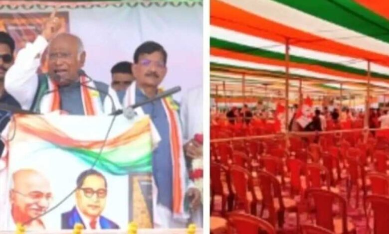 जिला अध्यक्ष ने 40 हजार लोगों के जुटने का दावा किया था। उन्होंने 25 हजार कुर्सियां लगवाई थीं। लेकिन खड़गे के मंच पर पहुंचने तक केवल दो हजार लोग ही मौजूद थे। मैदान में 90 प्रतिशत कुर्सियां खाली रहीं। इस स्थिति से खड़गे भी नाराज दिखे।