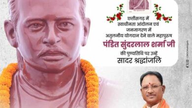 मुख्यमंत्री विष्णुदेव साय ने पंडित सुंदरलाल शर्मा की पुण्यतिथि पर उन्हें किया नमन