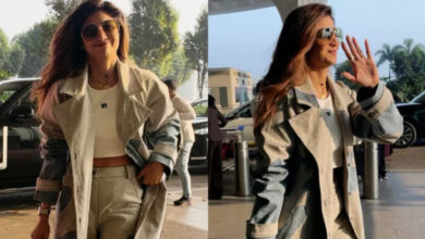 विमानतल पर स्टाइलिश लुक में नजर आईं शिल्पा शेट्टी, नाम लिखा बैग किया फ्लॉन्ट