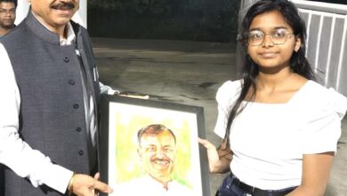 स्कूल शिक्षा मंत्री सिंह को बाल चित्रकार ने भेंट किया उनका चित्र