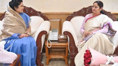 केन्द्रीय महिला एवं बाल विकास मंत्री श्रीमती अन्नपूर्णा देवी से राज्य मंत्री श्रीमती गौर ने की सौजन्य भेंट
