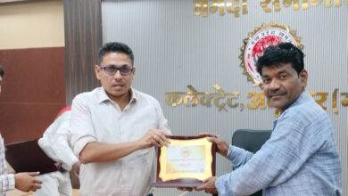 कलेक्टर श्री हर्षल पंचोली द्वारा पत्रकार डल्लू कुमार सोनी को स्मृति चिन्ह भेंट किया