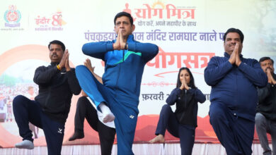 स्वच्छ सुखे नाले में स्वस्थ योग अभ्यास : पंचकुइयाँ स्थित श्रीराम मंदिर रामघाट पर योगसत्र का आयोजन