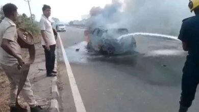 गुजरात के सूरत शहर के सचिन-मगदल्ला रोड पर चलती कार में अचानकर लगी आग, कपड़ा व्यापारी की मौत