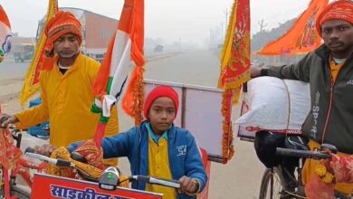 बोधगया के रहने वाले प्रकाश गुप्ता ने अपने आठ साल के बेटे के साथ साइकिल से वैष्णो देवी की यात्रा शुरू की