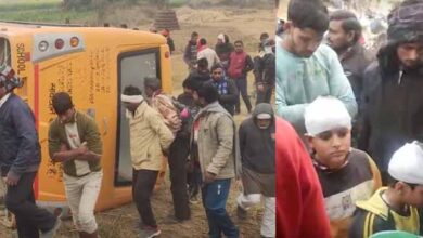 अलीगढ़ में कृष्णा पब्लिक स्कूल की बच्चों से भरी बस पलटी