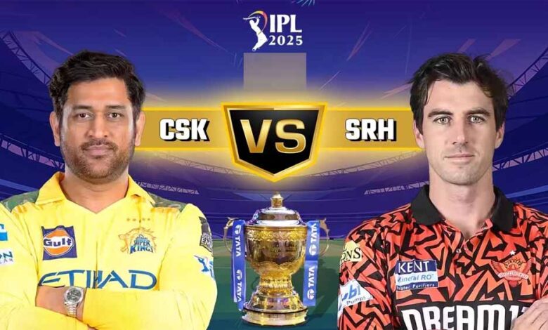इंडियन प्रीमियर लीग 2025 के 43वें मुकाबले में आज दो वर्ल्‍ड कप विनर कप्‍तान आमने-सामने हैं। चेन्‍नई के एमए चिदम्बरम स्टेडियम में चेन्‍नई सुपर किंग्‍स और सनराइजर्स हैदराबाद के बीच टक्‍कर हों रही है। सनराइजर्स हैदराबाद के कप्‍तान पैट कमिंस ने टॉस जीतकर पहले गेंदबाजी करने का फैसला लिया है। पहले बल्‍लेबाजी करने उतरी चेन्‍नई 154 रन पर सिमट गई।
