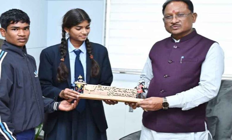 छत्तीसगढ़-स्कूली बच्चों ने नई शिक्षा नीति के तहत बनाई लकड़ी की नेम प्लेट और पोट्रेट, कलाकृतियों के गिफ्ट पाकर खुश हुए मुख्यमंत्री साय