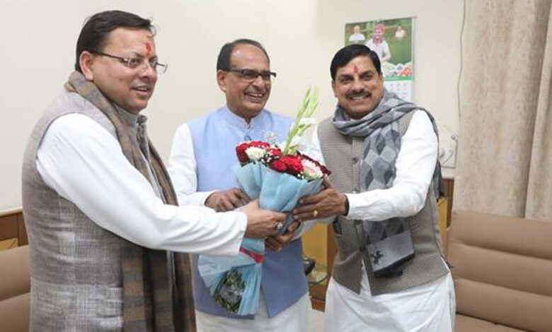 मुख्यमंत्री डॉ. मोहन यादव ने सोमवार की शाम केंद्रीय कृषि एवं ग्रामीण विकास मंत्री शिवराज सिंह चौहान से मुलाकात की। इस अवसर पर उपस्थित उत्तराखंड के मुख्यमंत्री पुष्कर सिंह धामी और मध्यप्रदेश विधान सभा के अध्यक्ष नरेंद्र सिंह तोमर ने भी केंद्रीय मंत्री चौहान से भेंट की। मुख्यमंत्री डॉ. यादव ने सागर में आयोजित कार्यक्रम से लौटने के अवसर पर केंद्रीय मंत्री चौहान से भेंट कर उनका अभिवादन किया। केंद्रीय मंत्री चौहान के पुणे से लौटने पर राजकीय विमान तल पर मुलाकातों का यह संयोग हुआ।