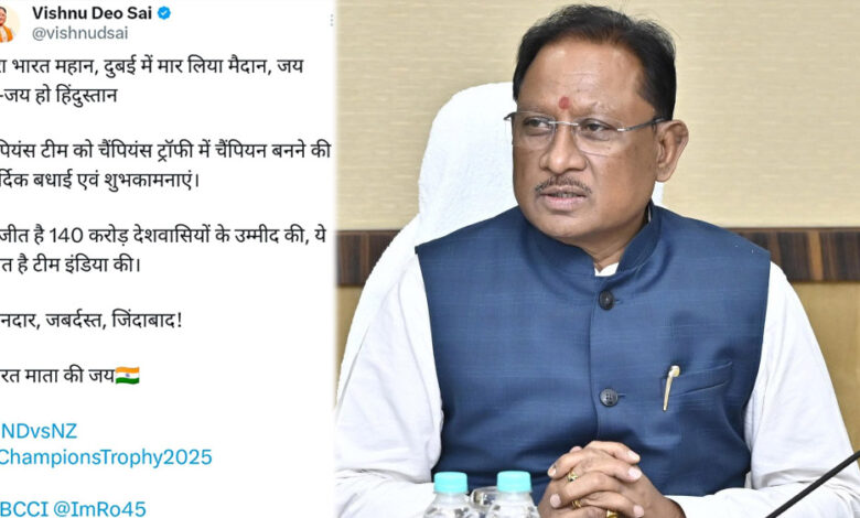 मुख्यमंत्री श्री विष्णु देव साय ने भारतीय क्रिकेट टीम को चैम्पियंस ट्रॉफी में ऐतिहासिक जीत पर दी बधाई