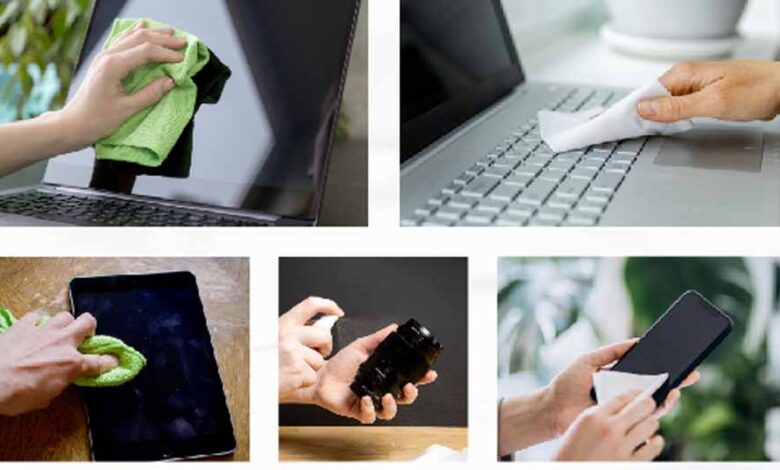 डिस्प्ले:- स्मार्टफोन हो या लैपटॉप, डिस्प्ले की सफाई करना थोड़ा आसान है। अगर आप कपड़े से डिस्प्ले की सफाई कर रहे हैं, तो इस बात का ध्यान रखें कि क्लॉथ खुरदुरा न हो। खास तौर पर पेपर टॉवल से डिस्प्ले की सफाई न करें। इससे हो सकता है स्क्रीन पर स्क्रेच मार्क आ जाएं और यह भी हो सकता है कि इससे स्क्रीन पर लगे एंटी-फिंगरप्रिंट कोटिंग भी हट जाए। इससे स्क्रीन के कुछ हिस्से भी नष्ट हो सकते हैं। स्क्रीन की सफाई के लिए पानी व किसी प्रकार के केमिकल का इस्तेमाल कभी न करें। हमेशा माइक्रोफाइबर क्लॉथ का ही इस्तेमाल करें। साथ ही एक बात का जरूर ध्यान रखें कि सफाई से पहले आपका डिवाइस स्विच ऑफ हो।