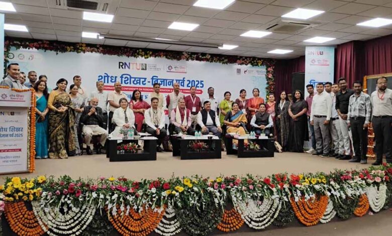 शोध एवं अनुसंधान पर आधारित दो दिवसीय कार्यक्रम “शोध शिखर विज्ञान पर्व 2025” का रबीन्द्रनाथ टैगोर विश्वविद्यालय (आरएनटीयू) परिसर में समापन सत्र का आयोजन किया गया। इसमें बतौर मुख्य अतिथि मप्र निजी विश्वविद्यालय विनियामक आयोग के अध्यक्ष प्रो. भरत शरण सिंह एवं विशिष्ट अतिथि के रूप में डॉ. मनोज कुमार पटेरिया, पूर्व अध्यक्ष, CSIR–NIScPR एवं डॉ. नम्रता पाठक, वैज्ञानिक-जी, एनजीपी और एसएमपी, विज्ञान और प्रौद्योगिकी मंत्रालय (DST) उपस्थित रहे। अन्य अतिथियों में स्कोप ग्लोबल स्किल्स यूनिवर्सिटी के कुलाधिपति डॉ. सिद्धार्थ चतुर्वेदी, आरएनटीयू की प्रो. चांसलर डॉ. अदिति चतुर्वेदी वत्स, कुलगुरू आरपी दुबे और सीवीआरयू खंडवा के कुलगुरू डॉ. अरूण जोशी उपस्थित रहे।