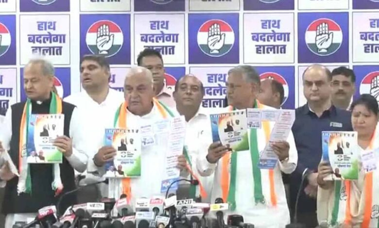 कांग्रेस ने हरियाणा विधानसभा चुनाव के लिए अपना घोषणा पत्र ‘हाथ बदलेगा हालात’ के नाम से जारी किया