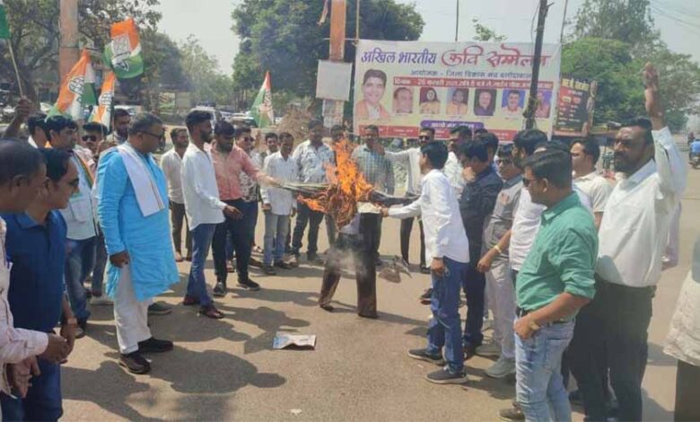 कांग्रेसियों ने जलाया ED और भाजपा का पुतला