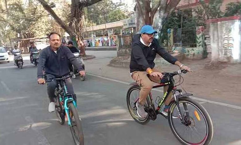 सफाई व्यवस्था का निरीक्षण करने सायकल पर निकले निगम आयुक्त