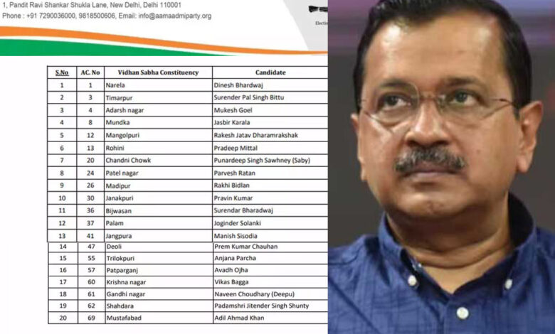 आम आदमी पार्टी के 11 कैंडिडेट्स वाली पहली लिस्ट में विश्वास नगर से दीपक सिंघला को टिकट दिया गया है। मटियाला से सोमेश शौकीन को टिकट मिला है, लक्ष्मी नगर से बीबी त्यागी को आम आदमी पार्टी ने अपना उम्मीदवार बनाया है। बीजेपी छोड़ आप में शामिल हुए अनिल झा को किराड़ी सीट से, बदरपुर से रामसिंह, घोंडा से गौरव शर्मा, करावल नगर से मनोज त्यागी, छतरपुर से ब्रम्ह सिंह तंवर, सीलमपुर से जुबैर चौधरी,सीमापुरी से वीर सिंह धींगान, रोहतास नगर से सरिता सिंह को पार्टी ने अपनी पहली लिस्ट में जगह दी है।