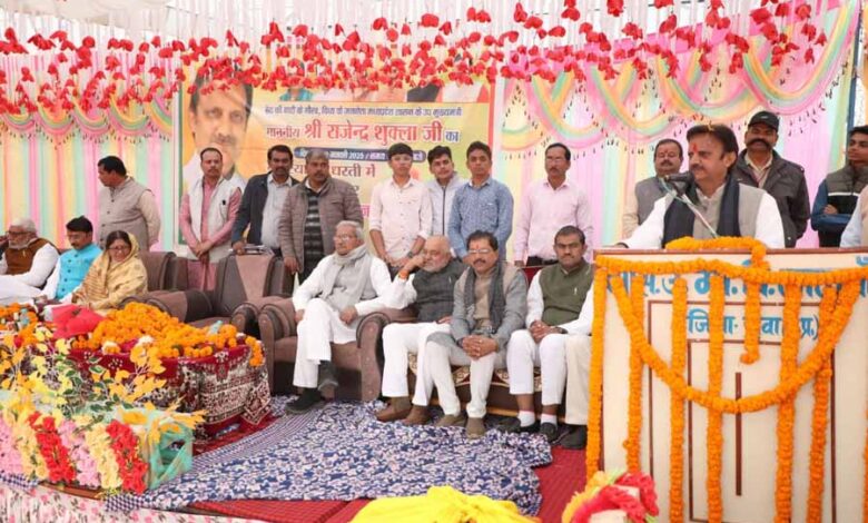 इस अवसर पर अपने उद्बोधन में सांसद जनार्दन मिश्र ने कहा कि यह भूमि स्व. भैयालाल जी शुक्ल की जन्म स्थली है इसे नमन करता हूँ। उनका समस्त जीवन लोक कल्याण के लिये समर्पित रहा। इस अवसर पर विधायक मनगवां इंजी. नरेन्द्र प्रजापति ने कहा कि उप मुख्यमंत्री श्री शुक्ल विकास के प्रति संकल्पित हैं। उनके मार्गदर्शन में मनगवां विधानसभा क्षेत्र भी विकास के पायदान पर आगे बढ़ेगा। कार्यक्रम में आयोजक संतोष तिवारी ने उप मुख्यमंत्री जी को प्रतीक चिन्ह सौंपा तथा स्वागत किया। इस अवसर पर जिला पंचायत अध्यक्ष श्रीमती नीता को, अध्यक्ष नगर निगम व्यंकटेश पाण्डेय, पूर्व विधायक श्यामालाल द्विवेदी, त्रियुगीनारायण शुक्ल, राजेश पाण्डेय, सत्यनारायण चतुर्वेदी सहित बड़ी संख्या में ग्रामीण जन उपस्थित रहे।