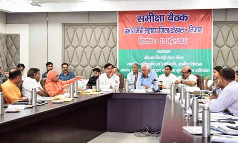 खैरथल-तिजारा जिला प्रभारी मंत्री तथा कृषि एवं उद्यानिकी मंत्री डॉ. किरोड़ी लाल मीणा ने बुधवार को रीको गेस्ट हाउस, भिवाड़ी में बैठक लेकर जिले में चल रहे विकास कार्यों, व्यक्तिगत और सार्वजनिक लाभ की योजनाओं व जिले से सम्बंधित राज्य बजट घोषणाओं की प्रगति की समीक्षा की। बैठक में डॉ. किरोड़ी लाल ने केंद्रीय पर्यावरण, वन एवं जलवायु परिवर्तन मंत्री भूपेंद्र यादव द्वारा दिए गए सुझावों ''वेस्ट टू एनर्जी'' परियोजना और भिवाड़ी मास्टर ड्रेनेज प्लान पर विस्तृत चर्चा की। उन्होंने इन योजनाओं को धरातल पर उतारने के लिए अब तक किए प्रयासों की समीक्षा करते हुए संबंधित अधिकारियों को आवश्यक दिशा-निर्देश प्रदान किए।