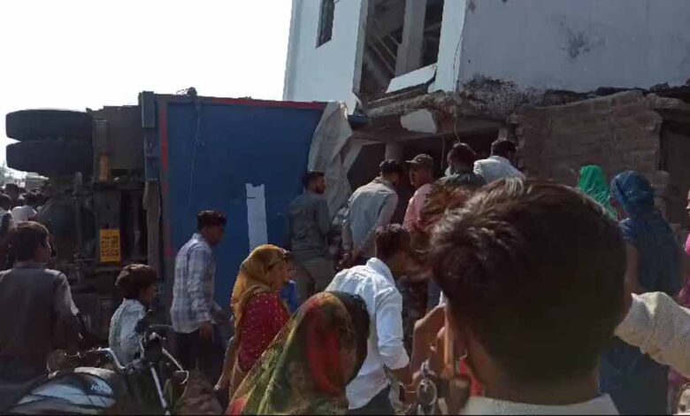 स्टेयरिंग फेल होने से एक डंपर अनियंत्रित होकर एक मकान में जा घुसा, दो बकरियों की मौत, लोगों की लगी भीड़