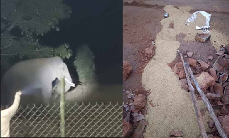 रायगढ़ में हाथी का आतंक, धान के बोरों को भी किया चट, ग्रामीणों में दहशत का माहौल