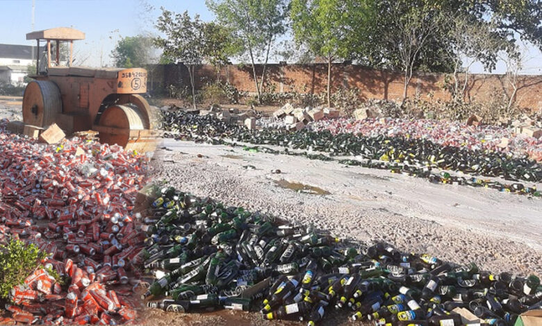 आबकारी विभाग ने 1.81 करोड़ की शराब पर चला का रोड रोलर, 4800 पेटी शराब और बीयर को किया नष्ट