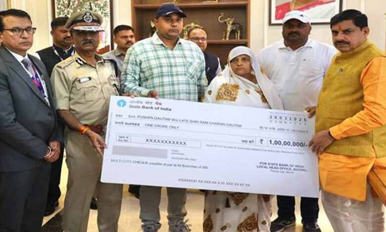 मुख्यमंत्री डॉ. यादव ने इस अवसर पर कहा कि कर्तव्य निवर्हन के दौरान अपने प्राणों को उत्सर्ग करने वाले पुलिस उपनिरीक्षक रामचरण गौतम की पत्नी श्रीमती पुष्पा को चेक प्रदान करते हुए कहा कि राज्य शासन ने स्व. गौतम को शहीद का दर्जा देते हुए उनके आश्रितों को एक करोड़ रुपए की सहायता राशि स्वीकृत की है।