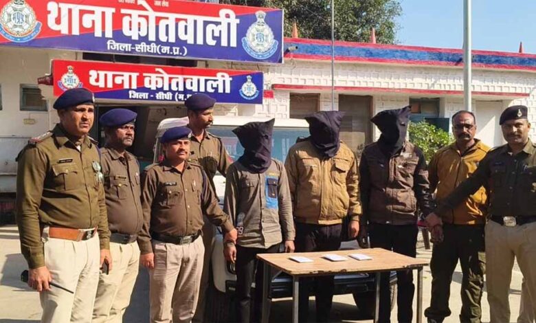 पुलिस ने देवेन्द्र उर्फ लाला यादव 26 वर्ष निवासी बाणगंगा, रीवा, सुधीश यादव 21 बर्ष बाणगंगा रीवा, दुर्गेश शर्मा 32 वर्ष निवासी रामगढ़, जिला मैहर को गिरफ्तार कर जेल भेज दिया है।