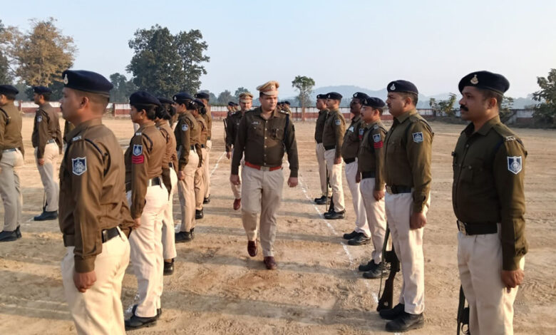 पुलिस अधीक्षक महोदय अनूपपुर द्वारा किया गया परेड का निरीक्षण