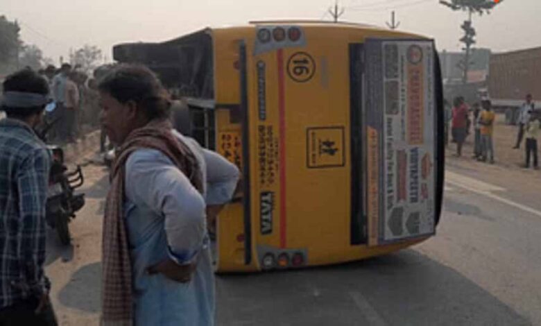 मुजफ्फरपुर में तेज रफ्तार स्कूली बस पलटी