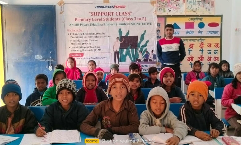 जैतहरी अनूपपुर, हिंदुस्तान पावर के अधीन सी एस आर विभाग  द्वारा पावर प्लांट के आसपास बसे लगभग 13 ग्रामों में शिक्षा स्तर को बेहतर बनाने के उद्देश्य से लगभग 400 बच्चों को निशुल्क सपोर्ट क्लासेज उपलब्ध करायी जा रही हैं, जिनमें बच्चों को पढ़ाई के साथ साथ ही योग एवं सूर्य नमस्कार का ज्ञान भी दिया जा रहा है, ग्रामीण क्षेत्रों के बच्चों ने बताया कि हमें प्रतिदिन लगभग 2 घंटे की क्लासेज दी जाती है जिनमें हमें मनोरंजन के साथ ही अंग्रेजी, गणित एवं सामान्य ज्ञान जैसे महत्वपूर्ण विषयों पर निःशुल्क शिक्षा प्रदान की जाती है, और बताया कि संस्था की ओर से हमारे विद्यालयों में डेस्क और बेंच भी उपलब्ध कराई गई है जिससे अब हमें लिखने, पढ़ने में अधिक सहूलियत होती है, सी एस आर विभाग के अधिकारियों ने बताया कि संस्था की ओर से आसपास के ग्रामीण क्षेत्रों में लगभग 13 शासकीय विद्यालयों में, लगभग 800 बच्चो को बैठने के लिए डेस्क और बेंच की व्यवस्था कराई गई है,