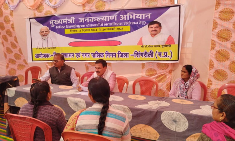प्रदेश सरकार के एक वर्ष पूर्ण होने पर शासन के निर्देशानुसार जिले के नगरीय क्षेत्र में नगर पालिक निगम सिंगरौली के आयुक्त डी.के शर्मा के निर्देशन में जनकल्याण शिविर का आयोजन निर्धारित तिथियो के अनुसार निगम क्षेत्र के सभी वार्डो में किया जा रहा है। इसी क्रम में आज नगर पालिक निगम के वार्ड क्रमांक 18 में जन कल्याण शिविर का आयोजन कर पात्र हितग्राहियों से आवेदन प्राप्त कर पात्रता अनुसार उन्हे योजनाओं के लाभ से लाभान्वित कराया गया।