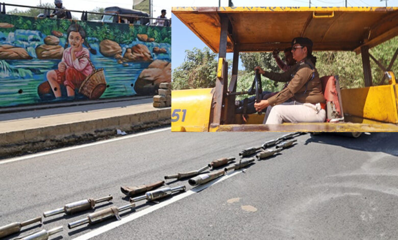 इंदौर में एक हजार मोडिफाइड साइलेंसर पर महिला टीआई ने चलाया रोड रोलर