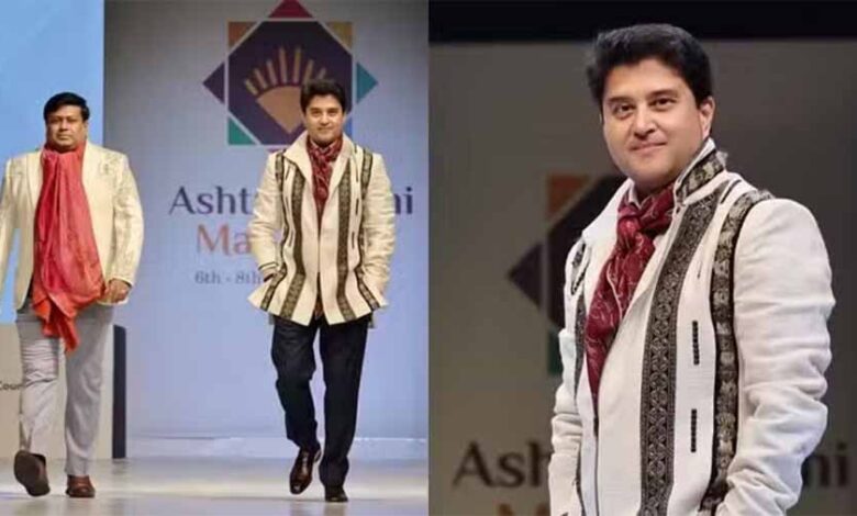 ज्योतिरादित्य सिंधिया ने ऐरी सिल्क जैकेट पहनकर किया रैंप वॉक