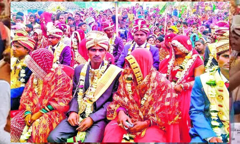 मुख्यमंत्री कन्या विवाह योजना अंतर्गत महिला एवं बाल विकास विभाग द्वारा आयोजित सामूहिक विवाह मंगल भवन सहसपुर लोहारा में 15 जोड़े परिणय सूत्र में बंधे लिये सात फेरे