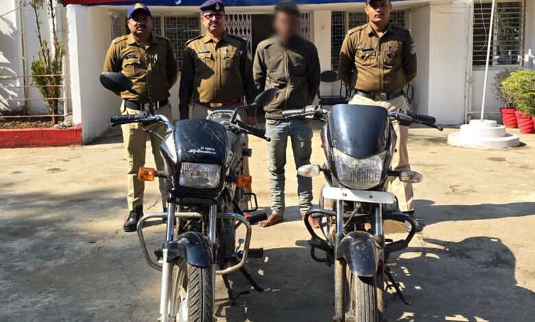 कोतवाली अनूपपुर पुलिस ने शातिर मोटरसाइकिल चोर को किया गिरफ्तार, चोरी की दो मोटरसाइकिल बरामद