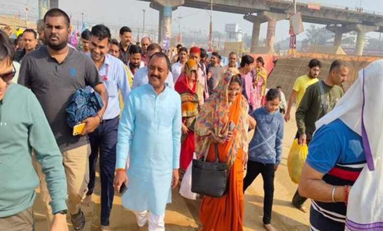 मंत्री राकेश शुक्ला ने रविवार को सपरिवार प्रयागराज के संगम में कुंभ स्नान किया