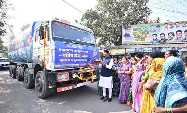 सहकारिता मंत्री श्री विश्वास कैलाश सारंग ने सोमवार को प्रयागराज महाकुंभ से गंगा जल लेकर आये टैंकर का रहवासियों के साथ स्वागत किया। उन्होंने विधि-विधान के साथ पवित्र गंगा जल से भरे टैंकर की आरती कर अभिनंदन किया। इस अवसर पर मंत्री श्री सारंग ने बताया कि नरेला विधानसभा के रहवासियों के लिए ‘हर हर गंगे-हर घर गंगे’ पहल की शुरुआत की है, जिसके तहत प्रयागराज महाकुंभ का पवित्र गंगा जल हर घर तक निःशुल्क पहुंचाया जाएगा। इस गंगा जल को विशेष रूप से प्रयागराज से लाया गया है और इसे बोतलों में पैक कर वितरित किया जाएगा।