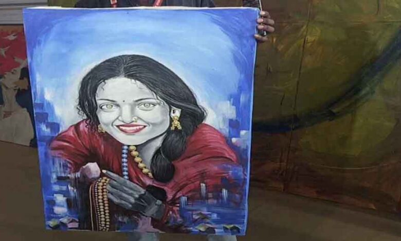 रुद्राक्ष की माला बेचने महाकुंभ में गई मोनालिसा अपनी कत्थई आंखों और सुंदर नैन नक्श के कारण इन दिनों लगातार सुर्खियों में बनी हुई हैं. उनके कई वीडियो और रील्स सोशल मीडिया पर वायरल हो चुके हैं. इन सबके बीच मोनालिसा की एक पेंटिंग सामने आई है. ये पेंटिंग किन्नर अखाड़े ने महाकुंभ के अपने शिविर में आर्ट एंड कल्चर गैलरी में लगी हुई है, जिसे पेंट और ब्रश के जरिए कलाकारों ने बनाया है. जिसमें उनका हंसता हुआ फेश कलाकार ने बनाया है. जो सोशल मीडिया पर वायरल हो रहा है.