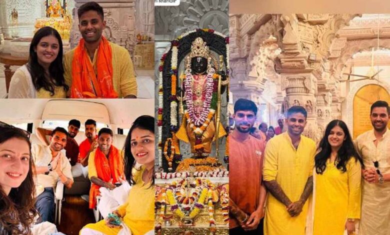 मुंबई इंडियंस के खिलाड़ी सूर्यकुमार यादव, दीपक चहर, तिलक वर्मा और करण शर्मा ने अयोध्या में रामलला के दर्शन कर रामलला के आशीर्वाद लिए. इसके बाद सपत्नी सूर्यकुमार यादव ने हनुमानगढ़ी पर पूजा और दर्शन किया. इस दौरान हनुमानगढी के मुख्य पुजारी हेमंत दास ने पूजा कराई.