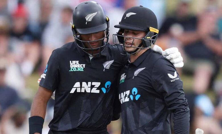 रचिन रविंद्र (79), मार्क चैपमैन (62) की शानदार बल्लेबाजी के दम पर न्यूजीलैंड ने बुधवार को दूसरे एकदिवसीय मैच में श्रीलंका को जीत के लिए 256 रनों का लक्ष्य दिया। आज यहां श्रीलंका ने टॉस जीतकर पहले गेंदबाजी करने का फैसला किया। बल्लेबाजी करने उतरी न्यूजीलैंड की शुरुआत अच्छी नहीं रही और उसने 31 के स्कोर पर सलामी बल्लेबाज विल यंग (16) का विकेट गवां दिया। उन्हें ए फर्नांडो ने आउट किया। इसके बाद बल्लेबाजी करने आये मार्क चैपमैन ने रचिन रविंद्र के साथ दूसरे विकेट के लिए 112 रन जोड़े। 20वें ओवर में महीश तीक्षणा ने मार्क चैपमैन 52 गेंदों में (62) को आउटकर इस साझेदारी को तोड़ा।