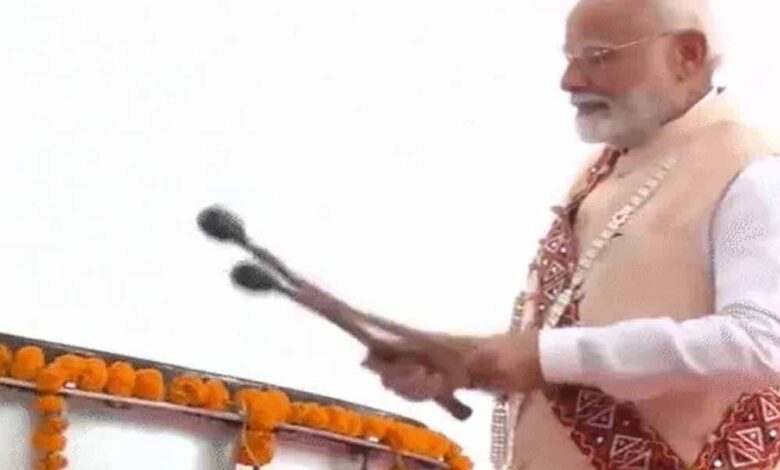 वाशिम में पीएम मोदी ने की पोहरादेवी जगदंबा माता की पूजा, मंदिर में ढोल बजाया