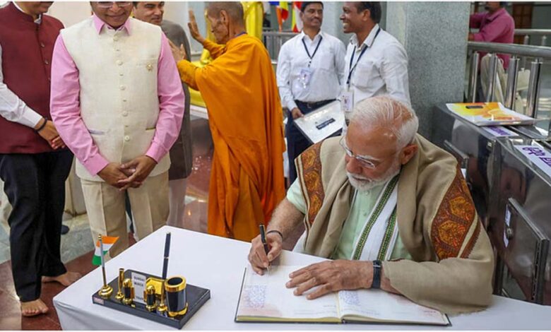 पीएम मोदी ने दीक्षाभूमि पर श्रद्धांजलि अर्पित की
