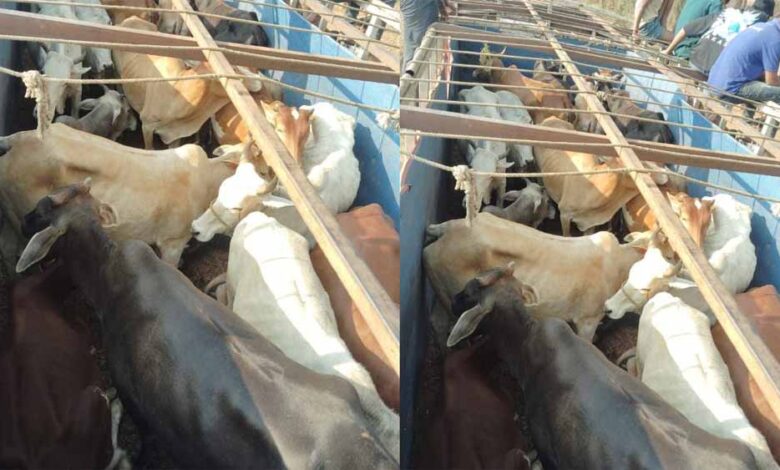 पुलिस ने कत्लखाने ले जा रहे 32 मवेशियों से भरे ट्रक पकड़ा, आरोपी फरार