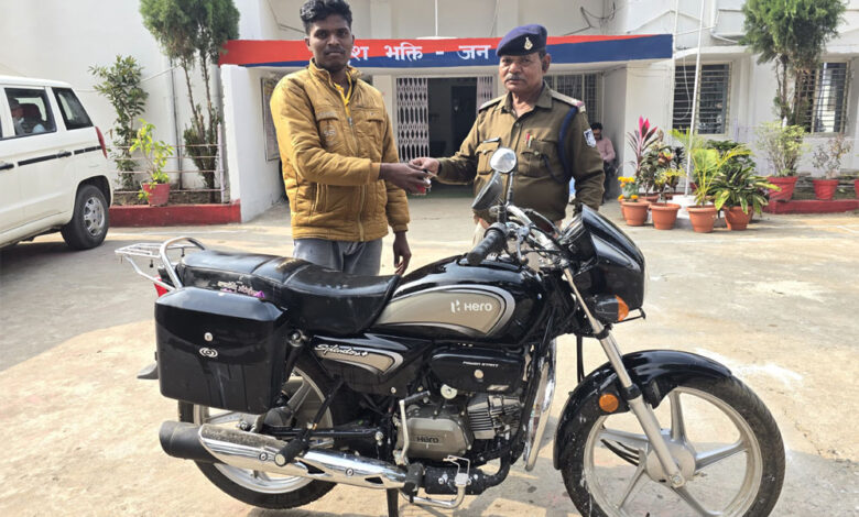 थाना कोतवाली अनूपपुर पुलिस ने चोरी गई मोटर सायकल बरामद कर न्यायालय आदेश पर वाहन मालिक को सौंपी