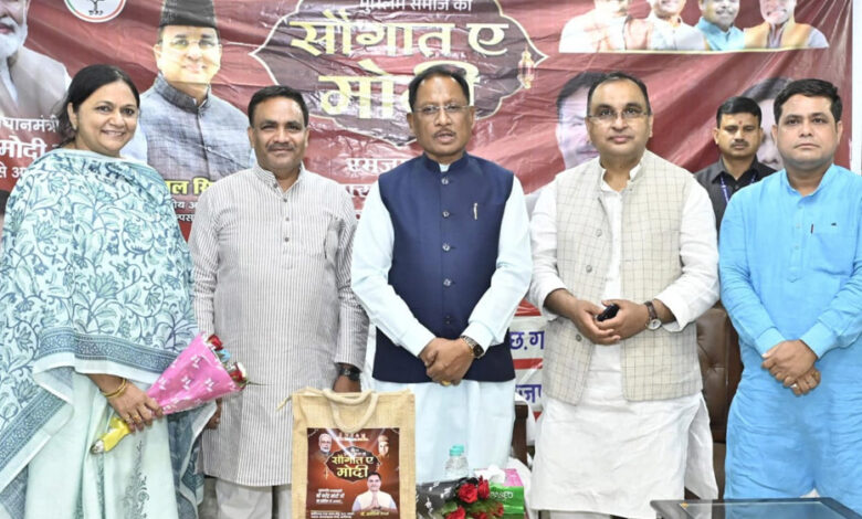 मुख्यमंत्री विष्णु देव साय ने मुख्यमंत्री निवास में आयोजित कार्यक्रम में मुस्लिम समाज की जरूरतमंद बहनों को सौगातें भेंट कर सामाजिक सौहार्द का संदेश दिया।